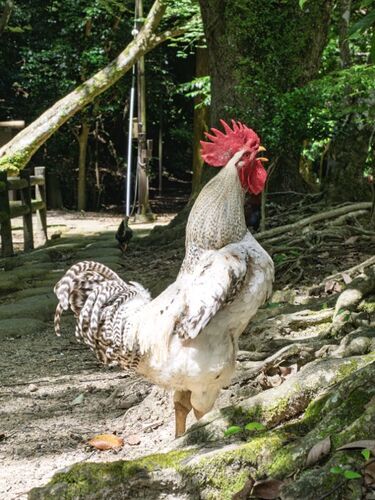石上神宮の境内をぶらぶらしていたら、ふと前を横切った影。あ、と思ったときには、もう視界のど真ん中にニワトリくんがどっしり構えていた。 まるで「わたしが主ですけど、なにか?」とでも言いたげな態度。それもそのはず、ここ石上神宮では、ニワトリが神…