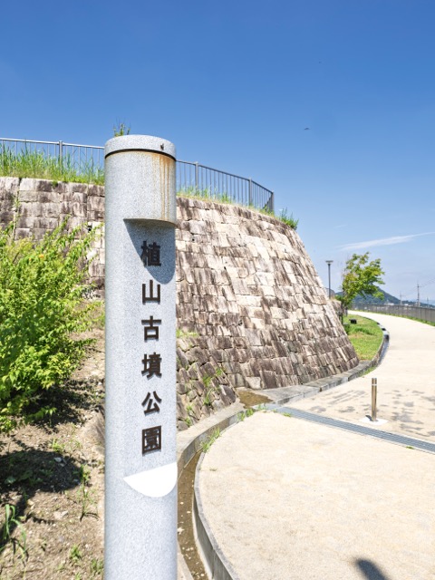 石柱に「植山古墳公園」と彫られている。白い雲ひとつない空に、この石の影がくっきり落ちていた。こういう風景を見ると、なんだか昔の人も見てたのかも、なんて思ってしまう。