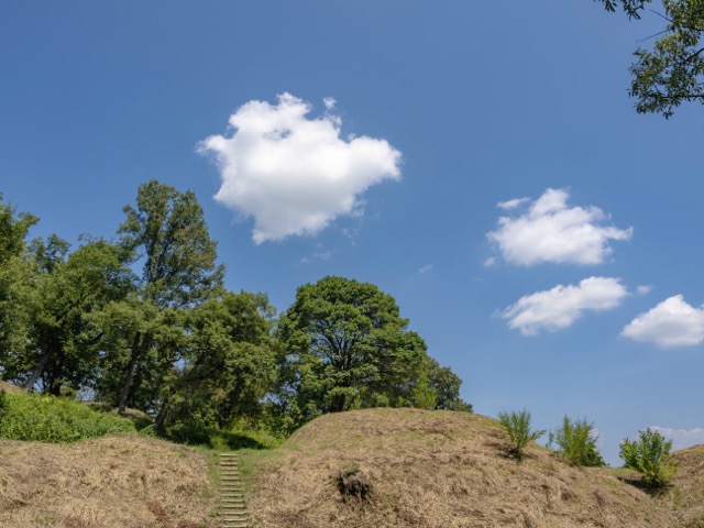 そんな新沢千塚は1976年に国の史跡に指定され、今では緑のなかをのんびり歩ける散策路になっている。小道を辿れば、古墳が小さな丘のように点在していて、草の匂いと風の音が混ざり合う。夏の空に白い雲が流れていくのを眺めていると、古代の人たちもきっと同じ空を仰いだのだろうと思えて、心がふわりと軽くなる。